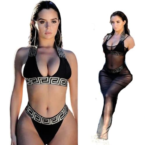 هنادي - طقم مايوه بيكيني حريمي من هنادي برباط - قماش دانتيل وتول والليكرا - مقاس واحد - مناسب لوزن 75 كجم أسود، للنساء