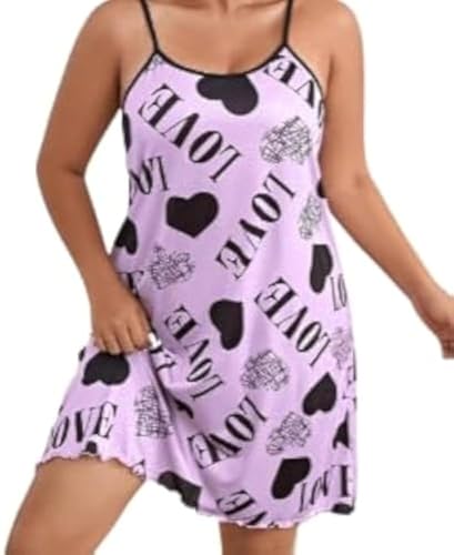 هنادي - قميص نوم مريح مطبوع للنساء من هنادي بحاشية مموجة من قماش قطن - مقاس واحد