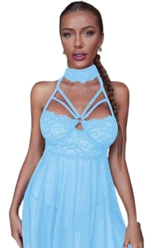 هنادي - طقم لانجيري برقبة برباط متقاطع للنساء من هنادي - مقاس واحد - قماش زبدة ودانتيل