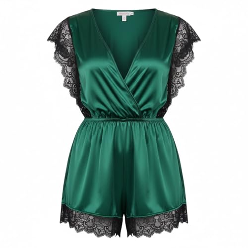 هنادي - جمبسوت نوم للنساء من هنادي بحافة مكشكشة من الدانتيل مع ظهر عميق على شكل حرف V - قماش زبدة كوري عالي الليكرا