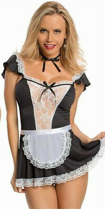 هنادي - ملابس نوم دانتيل للنساء من هانادي، زي تنكري لدور الخادمة - قماش ليكرا كوري وزبدة - مقاس واحد
