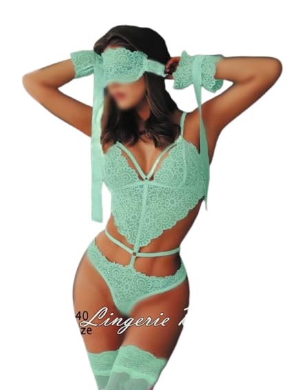 هنادي - سالوبيت بكباسين دانتيل بدون أكمام بحمالات رفيعة مزود بسلسلة مزخرفة للنساء من هنادي، قماش ليكرا كوري، مقاس واحد، لون أخضر مينت