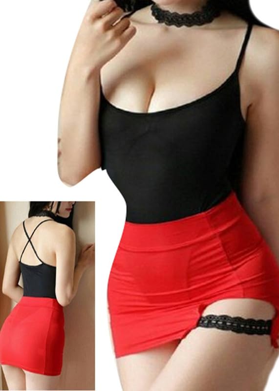 هنادي - سالوبيت بكباسين مثير مفتوح بين الساقين للنساء من هنادي، حزام متقاطع بطريقتين لارتداء ملابس داخلية عالية - مقاس واحد - قماش زبدة، اسود واحمر