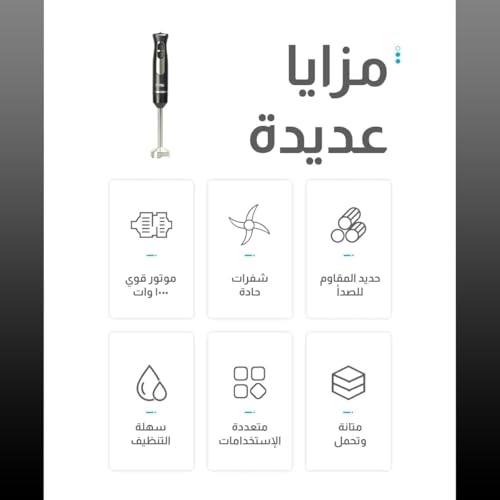 - امزج الوجبات السريعة في دقائق: خلاط كهربائي بقوة 1000 واط يحول الملوخية وحساء العدس وصلصة الطماطم بسلاسة دون سحب خلاط كبير. اختر قوامك مع تحكم بسيط في السرعة.