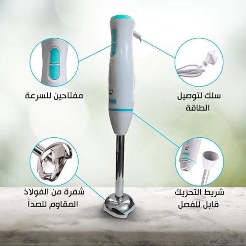 - خلاط يدوي للوجبات المصرية السريعة: اهرس شوربة العدس والملوخية وصلصة الطماطم مباشرة في الوعاء مع خلاط عصا غمر يوفر طاقة 200 واط وسرعتين للحصول على نتائج سريعة وسلسة.