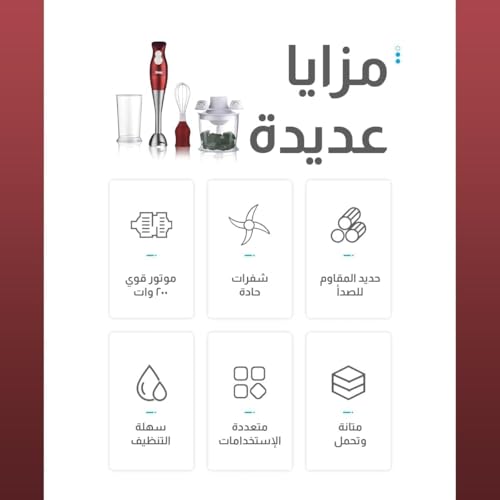 - ملحقات متعددة الاستخدامات لكل وصفة: استخدم عصا الخلط المصنوعة من الستانلس ستيل للحساء الكريمي، مفرمة 500 مل للبصل والمكسرات، كوب 700 مل للعصائر والصلصات، بالإضافة إلى خفاقة الكريمة المخفوقة وخليط الكيك بحيث تحل أداة صغيرة واحدة محل العديد من الأجهزة الضخمة