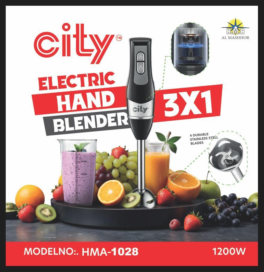 Generic - هاند بلندر سيتي HMA-1028 هو الجهاز المثالي لأداء فائق وسرعة في تحضير مختلف الوصفات. بفضل قوته العالية التي تصل إلى 1200 وات، 1200.0 واط، اسود