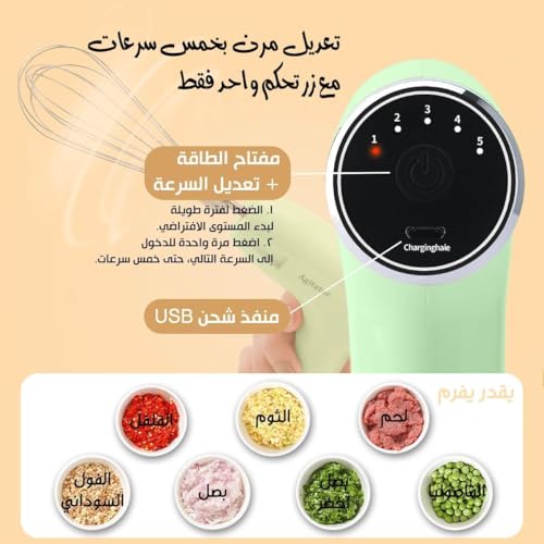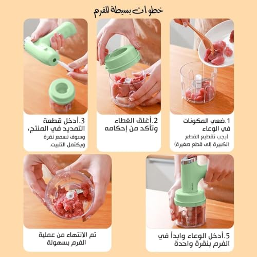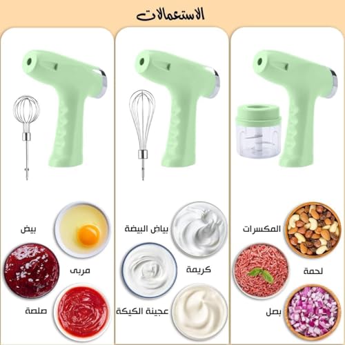 Generic - خلاط يدوي ومفرمة طعام 3 في 1 تشغيل بنقرة مزدوجة، مضرب وأداة خفق اللبن، متعددة الوظائف بحجم صغير