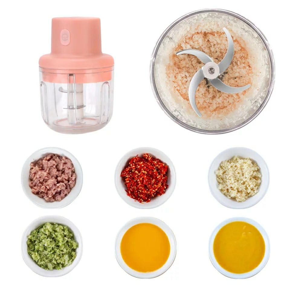 Generic - خلاط يدوي للمطبخ، وردي، متعدد الوظائف، مع وعاء تقطيع مزدوج، مفرمة طعام كهربائية للخضروات واللحوم