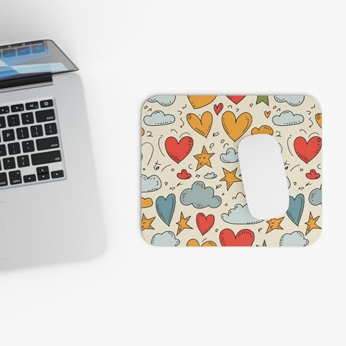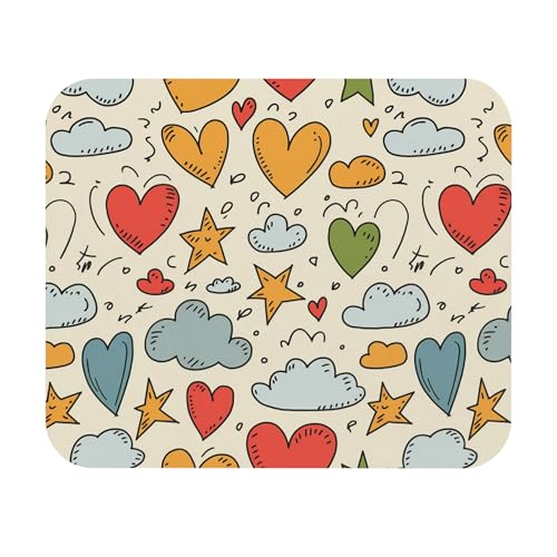Generic - قاعدة ماوس مرسومة باليد على شكل قلوب ونجوم - تصميم فني - سجادة مكتب ناعمة ومريحة للالعاب والعمل - قاعدة ماوس متينة مضادة للانزلاق - 30