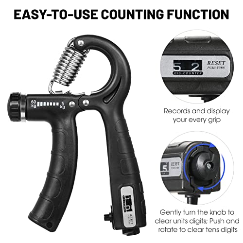 Eacam - مقوي قبضة اليد - مقاومة قابلة للتعديل من ايكام، 5-60 كجم، مرن الساعد مع عداد، مدرب القوة لبناء العضلات وتدريب المعصم