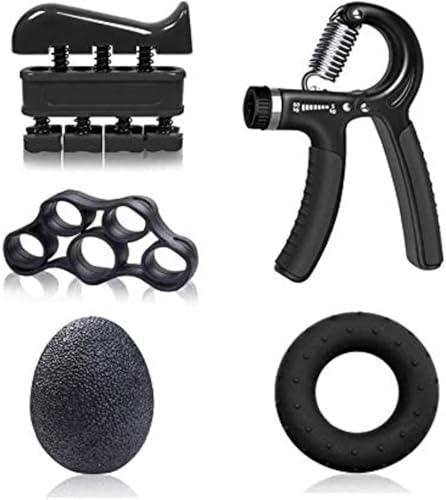 - مجموعة تدريب كاملة من 5 قطع لتقوية قبضة اليد تتضمن مجموعة تمرين تقوية قبضة اليد هذه مقبض يد قابل للتعديل وشريط تمديد للأصابع وتمرين الأصابع وحلقة قبضة وكرة تخفيف التوتر، مما يوفر حلاً كاملاً لتقوية اليدين والأصابع والمعصمين والساعدين.