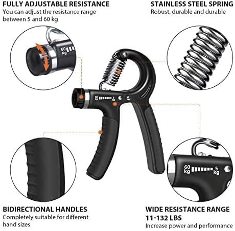 - تحسين قوة الإمساك وعضلات الساعد مصممة للمساعدة في تطوير أيدي ومعصمين وساعدين أقوى. مثالية للرياضيين ورافعي الأثقال والمتسلقين والموسيقيين وأي شخص يتطلع إلى تحسين قوة اليد والقدرة على التحمل.