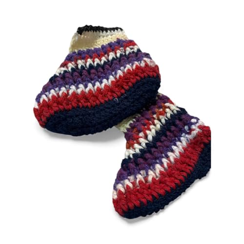 Generic - جوارب كروشيه محبوكة يدوياً، متعددة الألوان، أحمر وأرجواني وأزرق وكريمي، نمط مخطط