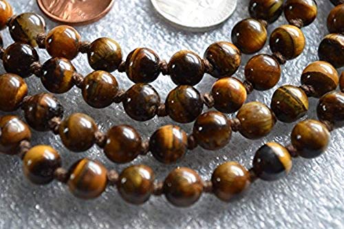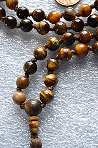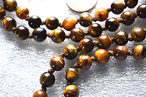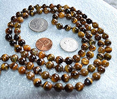 AWAKEN YOUR KUNDALINI - خرز لصنع القلادة يدويا بتصميم عين النمر عدد 108+1 مناسب لرفع الصلوات البوذية محفز للطاقة الايجابية ايه حرز للتامل مزود بكيس من المخمل او الجوت 100% بني مقاس الخرز 6ملم للنساء.