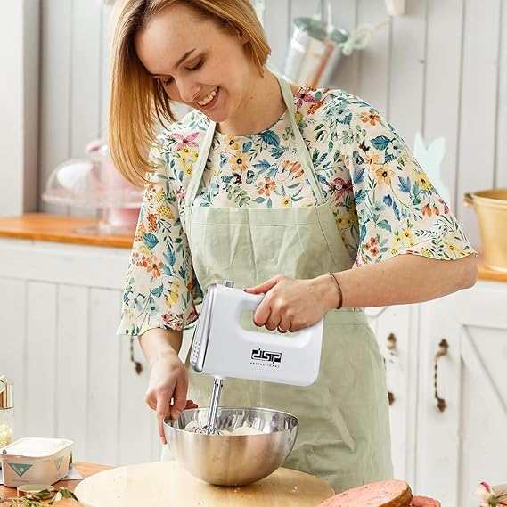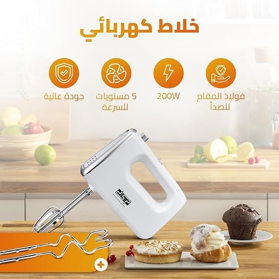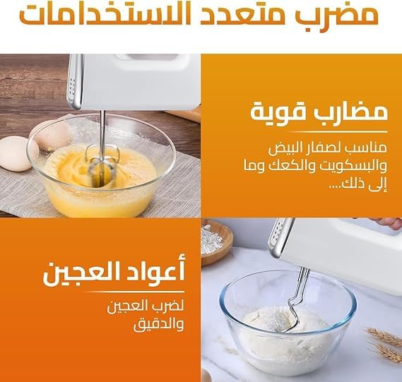 - ملحقات متينة: تأتي مع زوجين من العصي عالية الجودة - مضارب بيض 180 ملم للمرينغ المنفوش وخلاطات عجين 180 ملم للحصول على عجين ناعم.