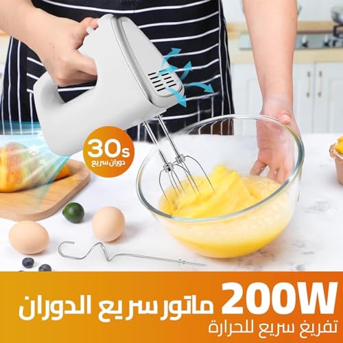 - ✅ملحقات متينة: يأتي مع زوج من المضارب عالية الجودة - مضرب الكريمة المنفوشة 180 ملم ومضرب العجن 180 ملم للحصول على عجينة ناعمة.