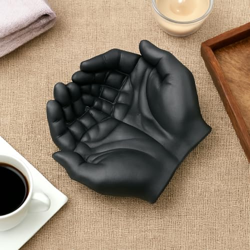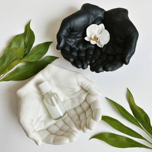 LC - مجسم فني متعدد الاستخدامات بشكل يد، حامل مجوهرات ومنصة لعرض الكريستال، تمثال منحوت لحمل الخواتم أو الحلويات والشموع أو للمفاتيح، إضافة عصرية لديكور المنزل أو المكتب - لون أبيض