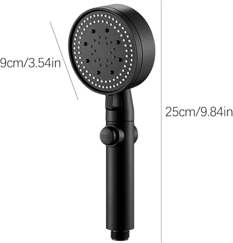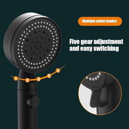 Generic - مجموعة رأس دش يدوي (رأس دش يدوي أسود بخمسة أوضاع ومفتاح تحكم للإغلاق)