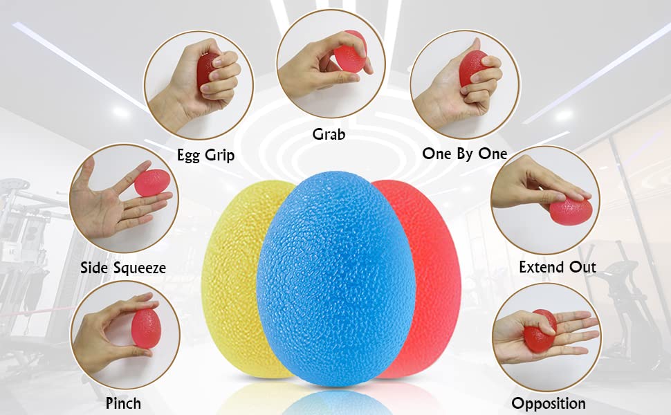 Generic - كرة تمارين لعلاج اليدين، كرة لتخفيف التوتر للبالغين والأطفال، كرة بيض قابلة للضغط من الجل، كرة لتمارين المقاومة للأصابع، مجموعة من 3 قطع لتخفيف آلام التهاب المفاصل