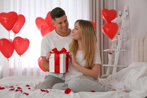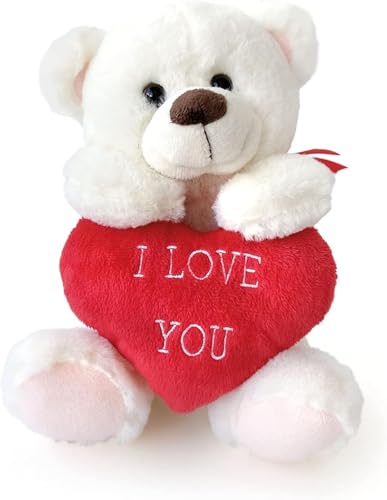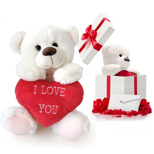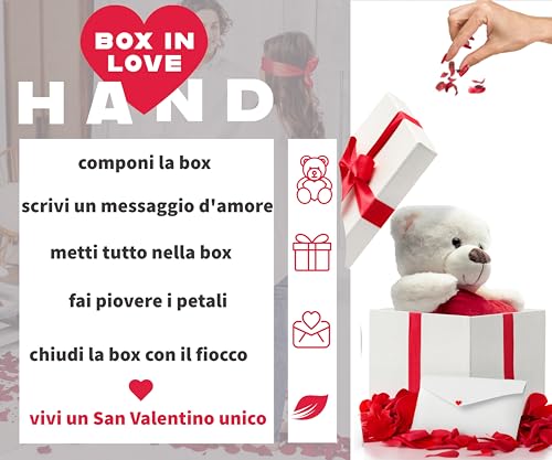 HAND - هاند لعبة قطيفة لعيد الحب مع صندوق هدايا وبتلات ورد، دب قطيفة، هدية لها، ارتفاع 25 سم، هدية عيد الحب، هدية للازواج، مع بطاقة حب (لوف يو بير)