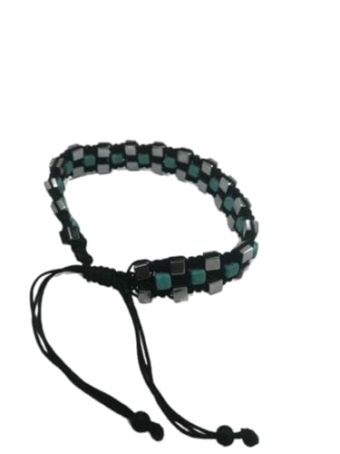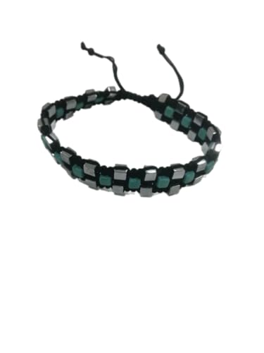 Generic - سوار منسوج يدوياً، أزرق وفضي، تصميم مربعات، حبل قابل للتعديل
