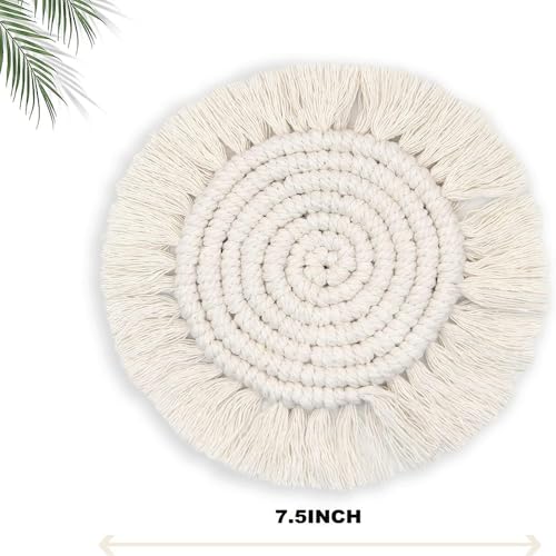fashion mania - قواعد أكواب من حبل قطني منسوج يدويًا بتصميم شرابات اسكندنافية دائرية غير قابلة للانزلاق عازلة للحرارة للأكواب والأطباق العميقة متعددة الاستخدامات، بيج