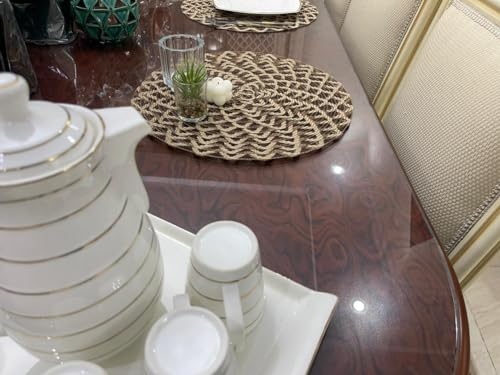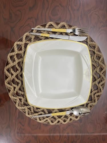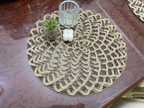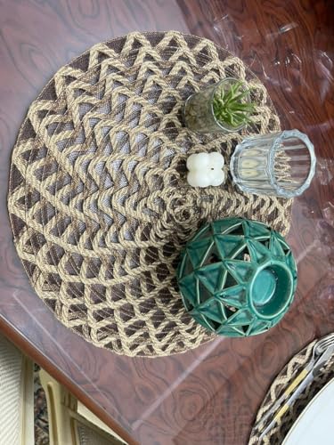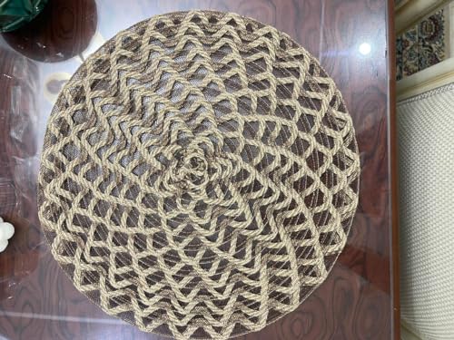 Generic - مفارش دائرية منسوجة يدويا ، مفارش قاعدة اكواب وغير قابلة للانزلاق لترابيزة الطعام-بيج فى اسود عدد 4 قطع