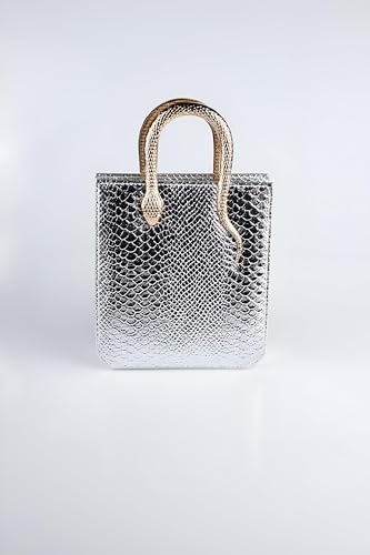 Generic - ملحق حقيبة يد - محفظة صغيرة فضية مزخرفة بمقبض ذهبي، مصممة لتكمل المظهر الأنيق الرسمي والكاجوال مع توفير العملية