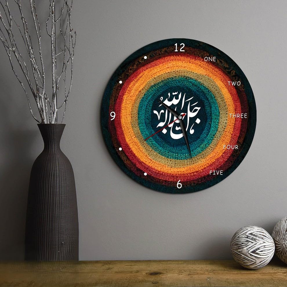 Generic - ساعة حائط عربية مصنوعة يدويًا، قطر تصميم كروشيه قوس قزح، فن الخط الإسلامي (40 سم)