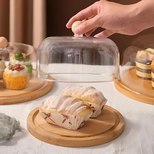 Generic - حامل كيك يدوي الصنع بغطاء شكل قبة غير قابل للكسر ومقبض خشبي مريح - حامل كيك اكريليك أنيق ومتين لتقديم الطعام في المناسبات العادية والرسمية، المقاس 35 سم