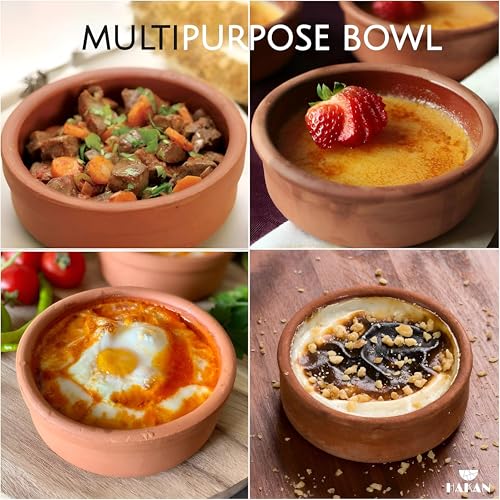 - مصنوعة من أواني فخارية عالية الجودة مصنوعة يدويًا، تم تصميم أواني الطهي هذه من أجل المتانة وطول العمر، مما يجعلها مثالية للخبز في الفرن والاستخدام المباشر على الموقد مع موزع حرارة للحفاظ على سلامتها بمرور الوقت.