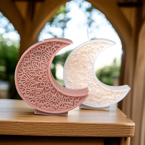 Tablouhaty - مجموعة شموع بتصميم اسلامي مصنوعة يدويا - فانوس ثلاثي الابعاد على شكل هلال ونجمة ومسجد - ديكور شمعي بيج انيق لشهر رمضان والعيد