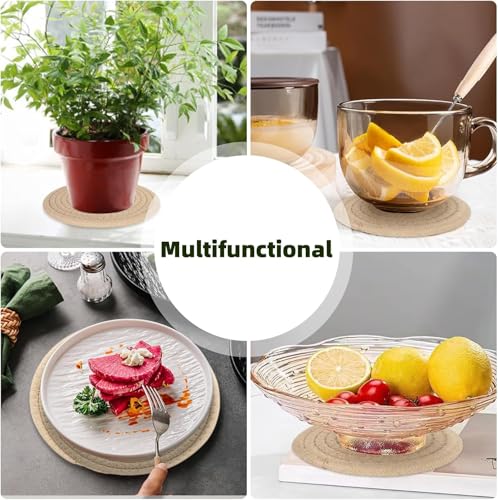 - ✅【Handcrafted Circular Coasters】Each piece is meticulously handcrafted into a perfectly circular shape using natural jute fibers, delivering a distinctive artisanal appeal that elevates table aesthetics while ensuring durability and resilience for daily use, making it an elegant addition to living rooms, dining tables, coffee corners, or office desks that merges style with practical functionality. 🌀