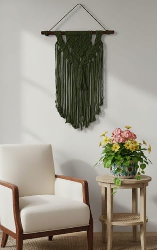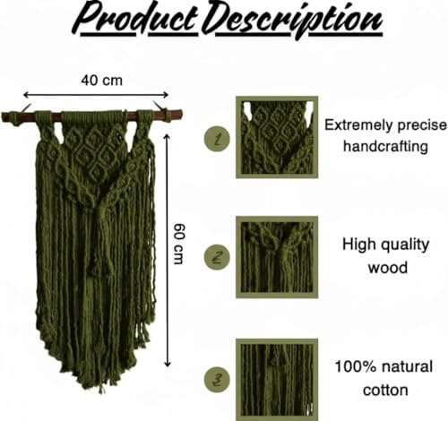 Generic - مكرمية مصنوعة يدويا للتعليق على الحائط، نسيج قطني منسوج، 40 × 60 سم، ديكور منزلي بوهو مع قضيب خشبي، لون (زيتي)