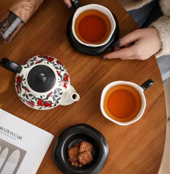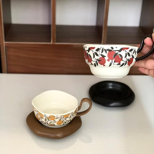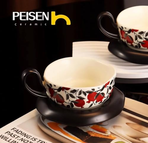 Generic - كوب بورسلين مصنوع يدويا مع قاعدة اكواب بورسلين متطابقة 300 مل، كوب مشروبات يومي انيق بنمط طاولة فني للمنزل والقهوة والشاي هدية للاستخدام العصري
