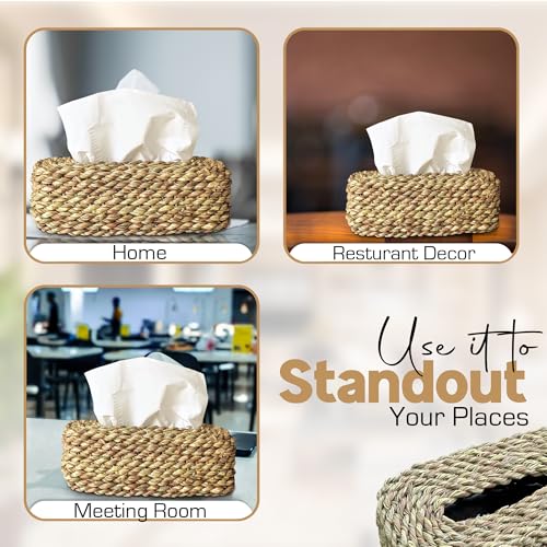 Generic - علبة مناديل مصنوعة يدويا، نمط بوهيمي، علبة خوص، حامل مناديل مميز كديكور للمنزل والمكتب والمطعم والحمام