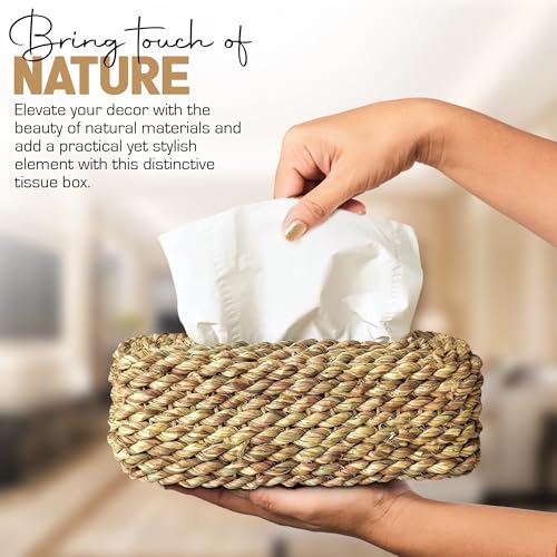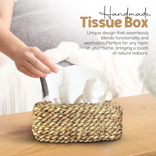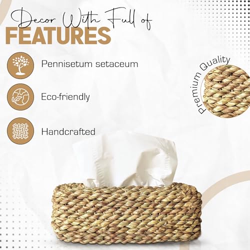 • علبة مناديل مصنوعة يدويًا من نبات بينيسيتوم سيتاسيوم لإضفاء لمسة طبيعية وصديقة للبيئة.