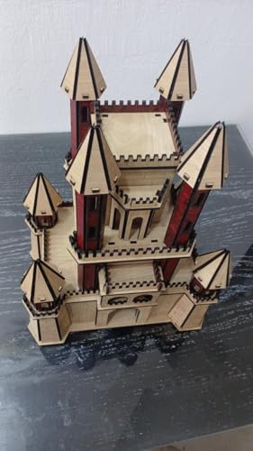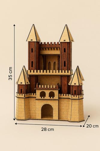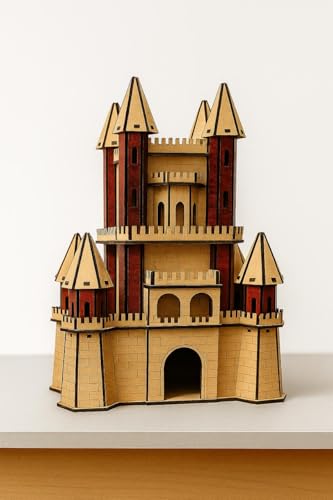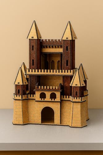 عام - نموذج قلعة خشبي مصنوع يدويًا - مصغر مزخرف مقطوع بالليزر - لمسة نهائية طبيعية من خشب الماهوجني