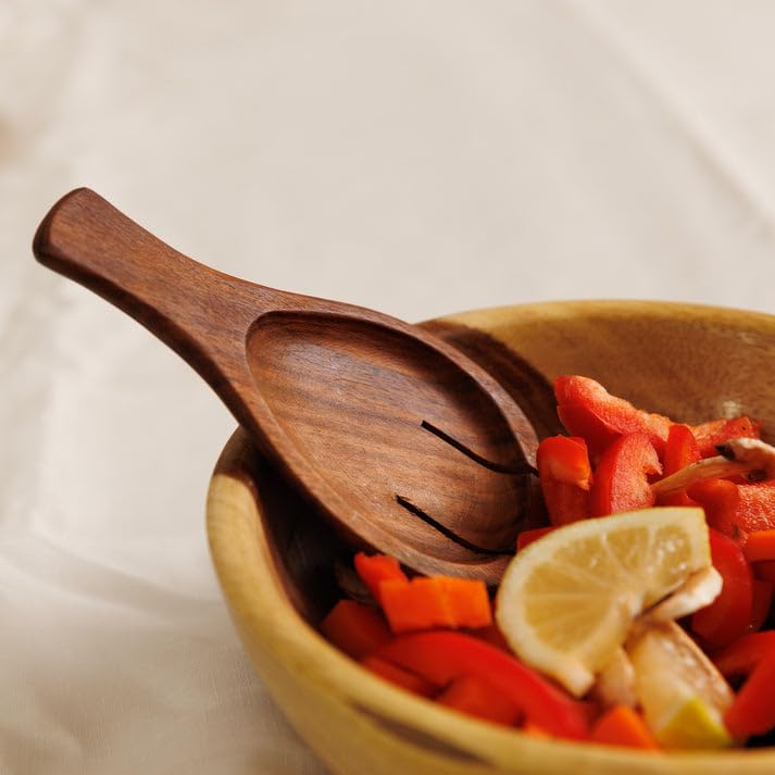 Generic - مجموعة ادوات تقديم السلطة الخشبية المصنوعة يدويا، خشب اسرسوس الطبيعي