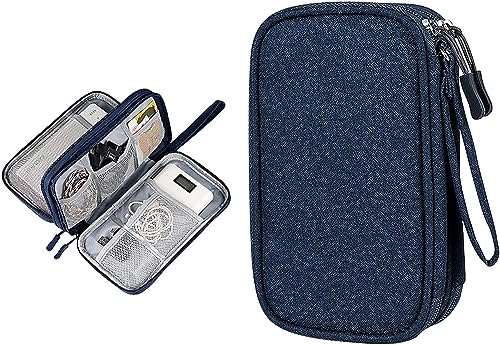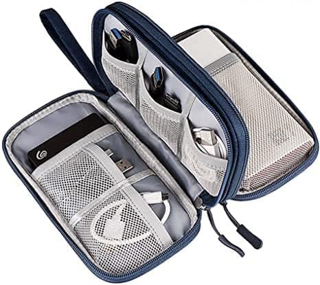 Handcuffs - شنطة تنظيم لاكسسوارات الإلكترونيات والكابلات، شنطة أدوات سفر شاملة لحمل الكابلات والقابس وأكثر من ذلك، حجم مثالي لجهاز الباد وشاحن الموبايل والقرص الصلب (لون أزرق)
