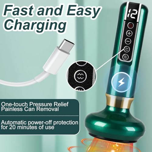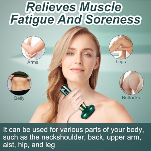 AIRFULAE - جهاز تدليك لعلاج السيلوليت محمول، جهاز تدليك ذكي كهربائي لاسلكي قابل لإعادة الشحن، مجموعة علاج الحجامة مع وظيفة التسخين، يخفف آلام العضلات والرقبة والكتف والظهر (لون أخضر)
