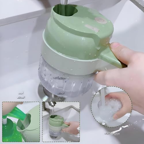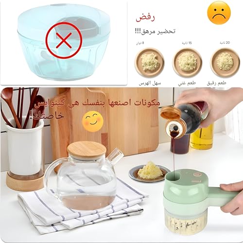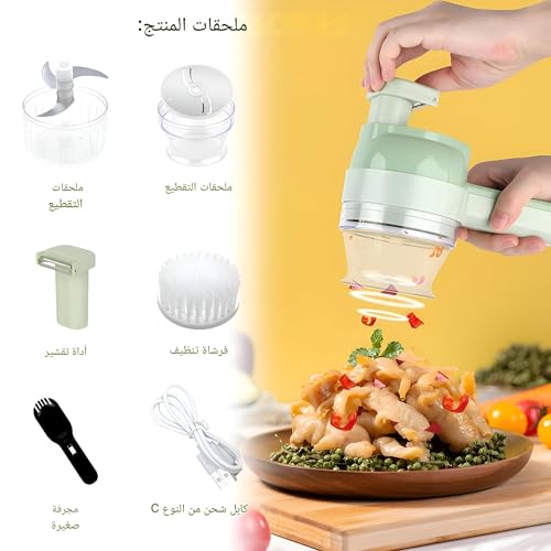 Generic - مجموعة قطاعة محمولة باليد - قطاعة خضروات كهربائية محمولة 4 في 1 لتحضير سريع للثوم والفلفل الحار والبصل والمزيد مع محضر طعام لاسلكي صغير متعدد الوظائف متوفر باللون الأخضر