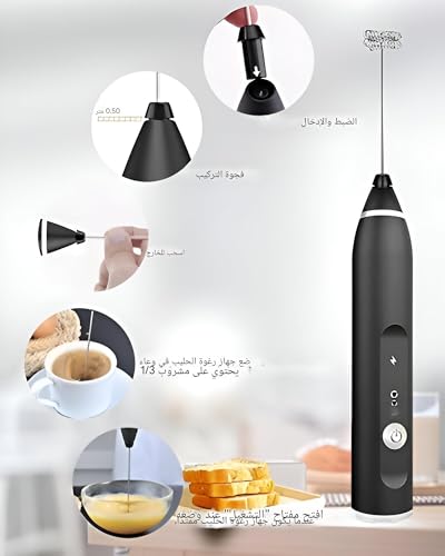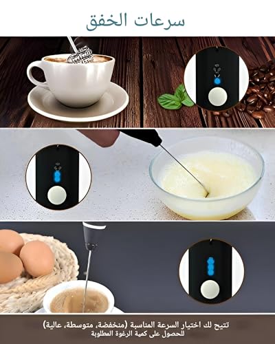 Generic - ماكينة صنع رغوة القهوة المحمولة باليد - ماكينة صنع رغوة الحليب بثلاث سرعات لمحبي الكابتشينو واللاتيه والماتشا والشوكولاتة الساخنة والشاي