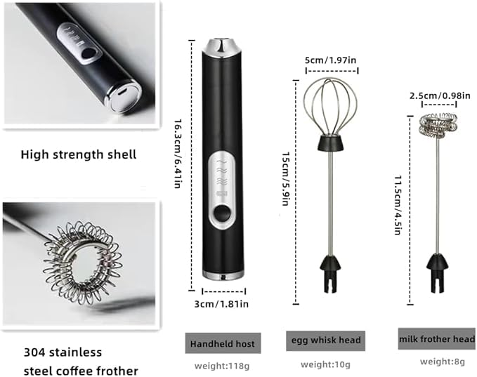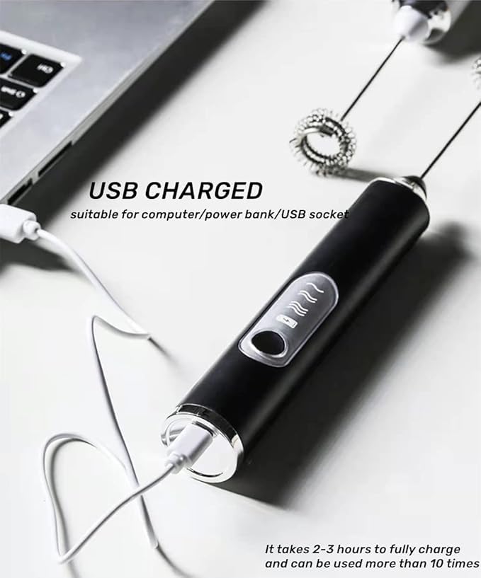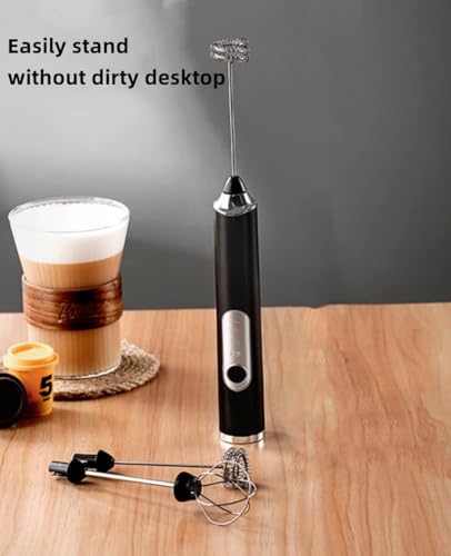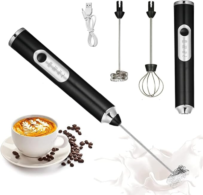 Generic - صانع رغوة قهوة محمول باليد قابل لإعادة الشحن بمنفذ USB، خلاط صغير بثلاث سرعات مع مضرب من الفولاذ المقاوم للصدأ، لخفق البيض واللاتيه والكابتشينو والشوكولاتة الساخنة (أسود)