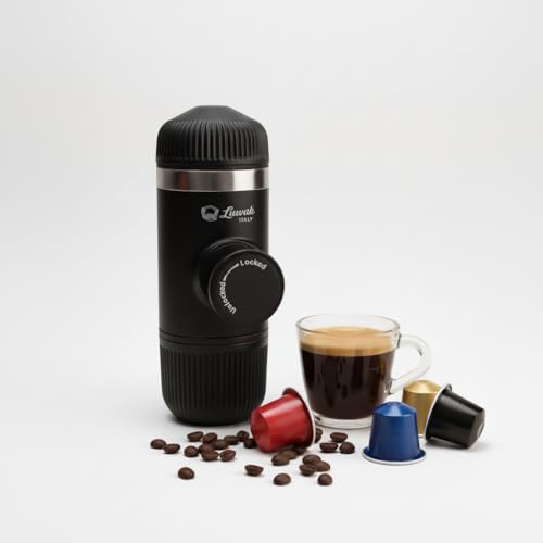 Generic - ماكينة إسبريسو محمولة يدويًا لصنع القهوة في أي مكان – تعمل بدون كهرباء – متوافقة مع البن المطحون وكبسولات (اسود)