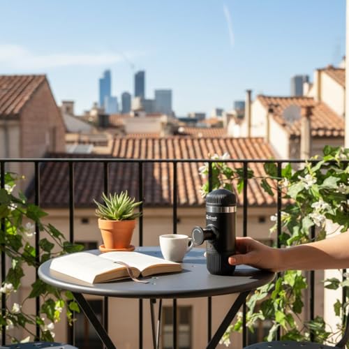 - بدون كهرباء: تعمل بالضغط اليدوي فقط، مما يسمح لك بتحضير الإسبريسو في أي مكان بدون الحاجة لمصدر طاقة.