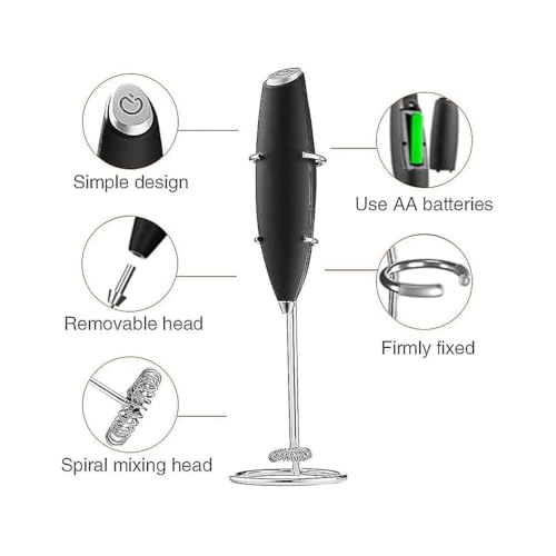 Generic - مضرب خفق اللبن المحمول باليد مع حامل يعمل بالبطارية وصانع رغوة الحليب وخلاط مشروبات كهربائي للقهوة واللاتيه والكابتشينو