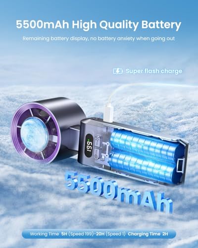 - سرعة الرياح المخصصة بنفسك: تقدم مروحة السفر محركًا مشابهًا لمجفف الشعر عالي السرعة، ويسهل ضبط سرعة الرياح من 1-199 ترس، يلبي جميع احتياجاتك. نظام توجيه الرياح المزود بشاحن توربيني، تجمع رياح قوي، تدفق هواء عالي السرعة، مما يوفر تجربة تبريد مذهلة، تزيد سرعة التبريد بأكثر من 3 مرات، اختيار رائع كهدية للسفر.