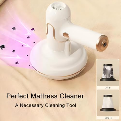 Generic - مكنسة كهربائية محمولة مع شفط 7500 باسكال للتنظيف العميق مثالية لازالة عث الغبار من المفروشات والمراتب تتميز باكواب تجميع قابلة للغسل وثلاث بكرات مبتكرة أبيض